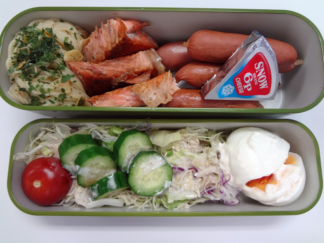 糖質0g麺、焼鮭、ソーセージ、6Pチーズ、