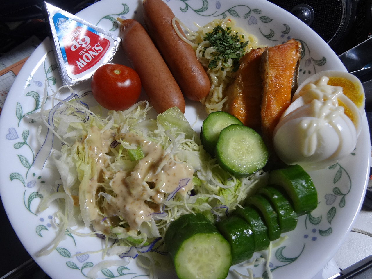 サラダ、茹で卵。