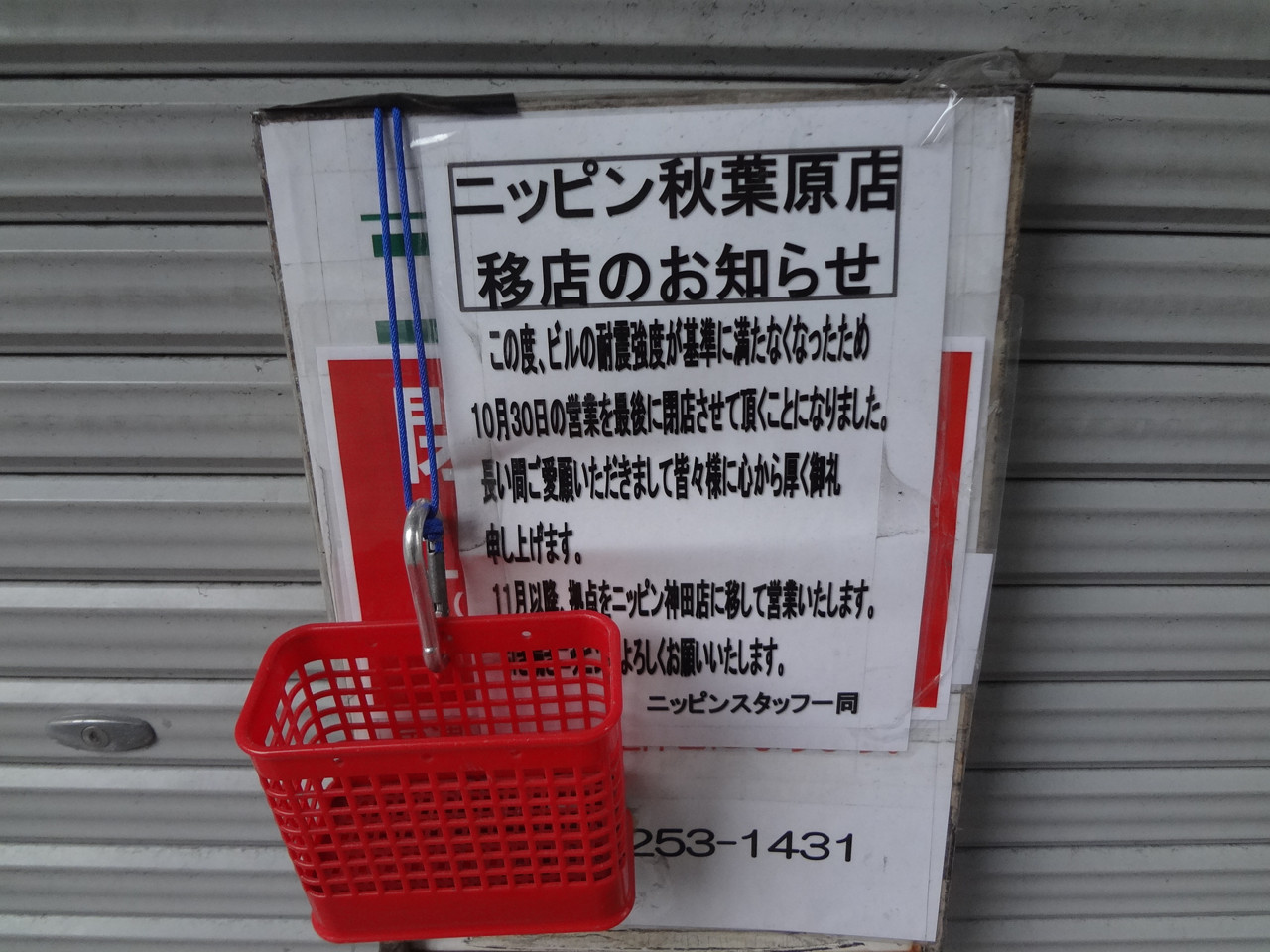 秋葉のパーツ通りの入り口っていうのかな、昔から営業してた登山用具店?がついに閉店。