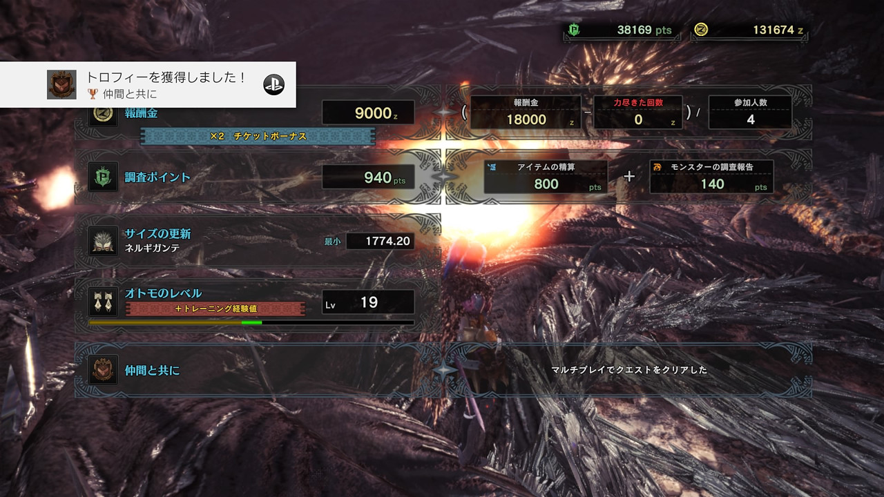 モンスターハンターワールド進めました。