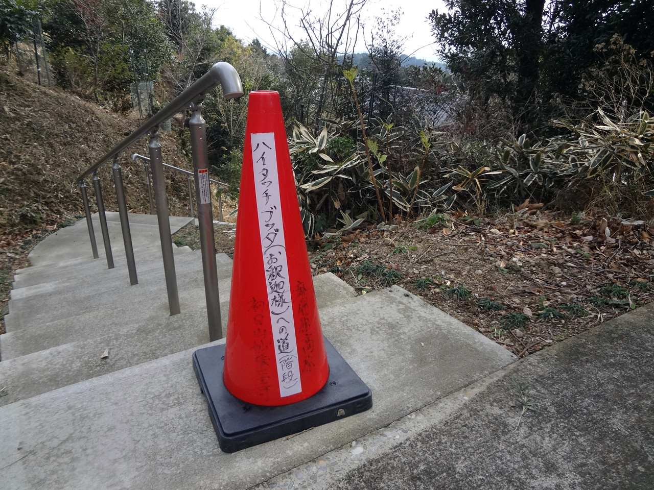 かたや下り坂の方には「ハイタイッチブッダへの道」とやらが。