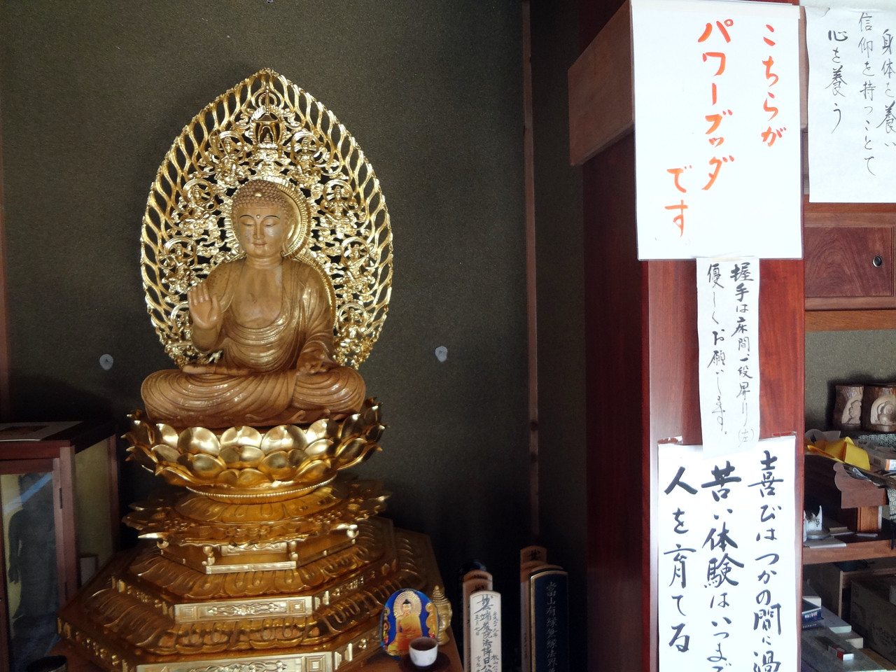 ここには妙法生寺(みょうほうしょうじ)というお寺があり、いくつかの仏像さんがおわします。