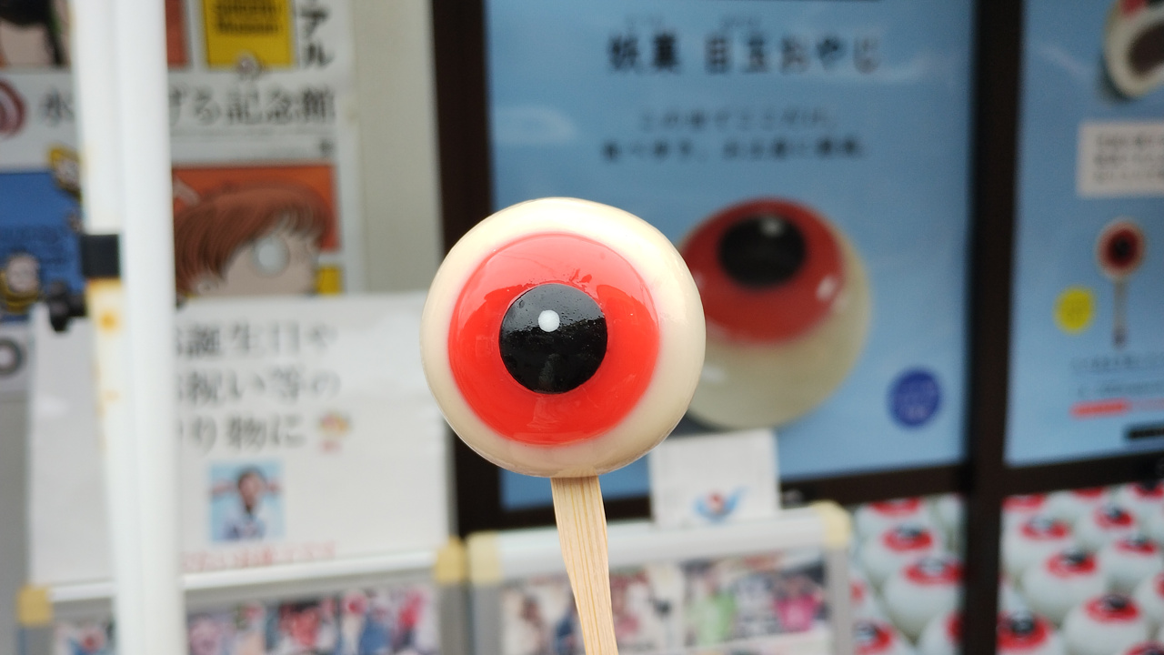記念館近くで売ってた、目玉のおやじのお饅頭。(´・ω・`)