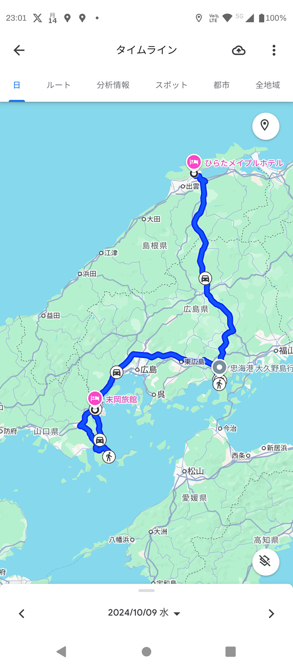 2日目の道程は、日本海側から南下して瀬戸内海へ、