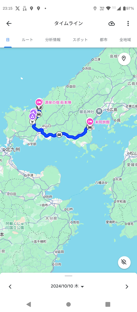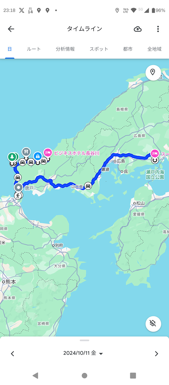 日本海側からぐるっと山口県の外縁を巡り、広島まで。