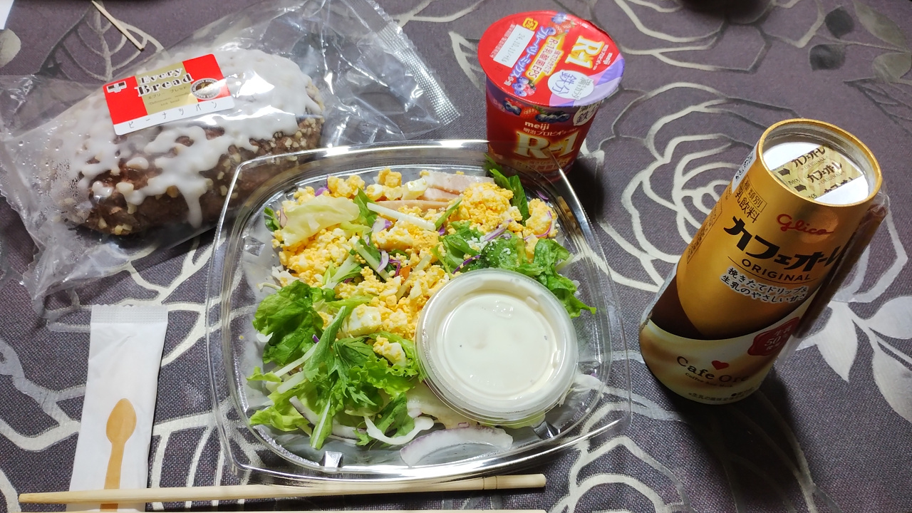 あらかじめ購入していたパンとサラダとヨーグルトという、