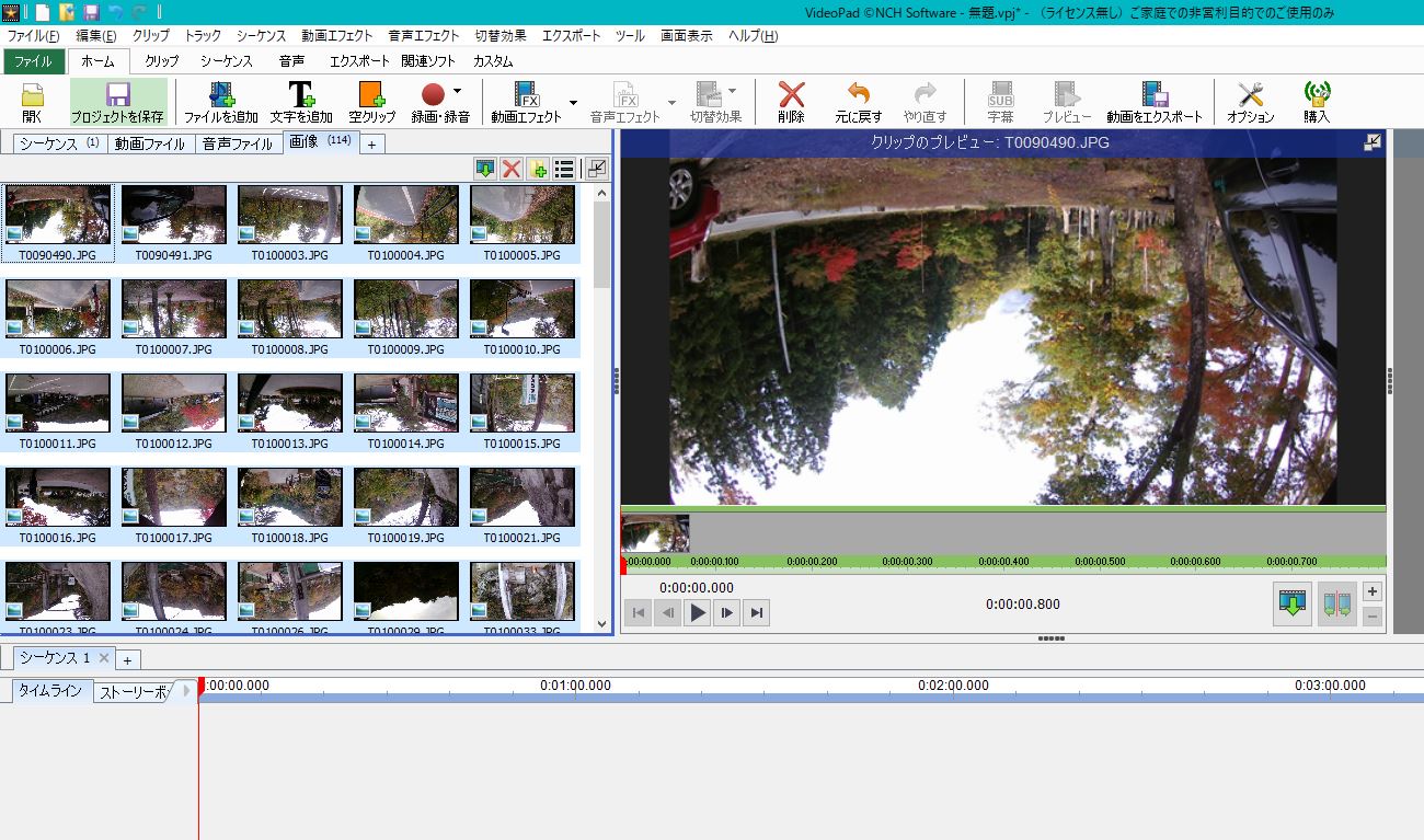 動画編集ソフト「VideoPad」に読み込ませたところ。