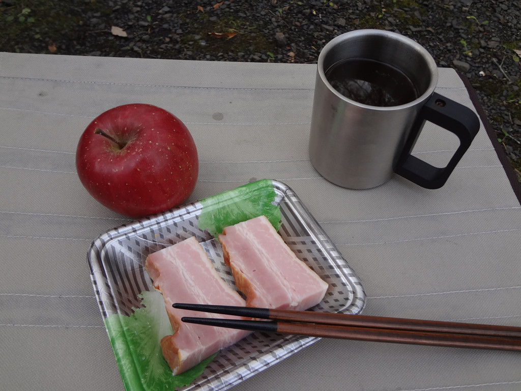 朝のキャンプ場。他の人はまだほとんど起きてきてません。