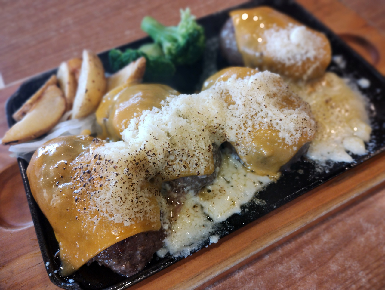 これはレパートリーの一つ、炙りチーズ大俵ハンバーグ。