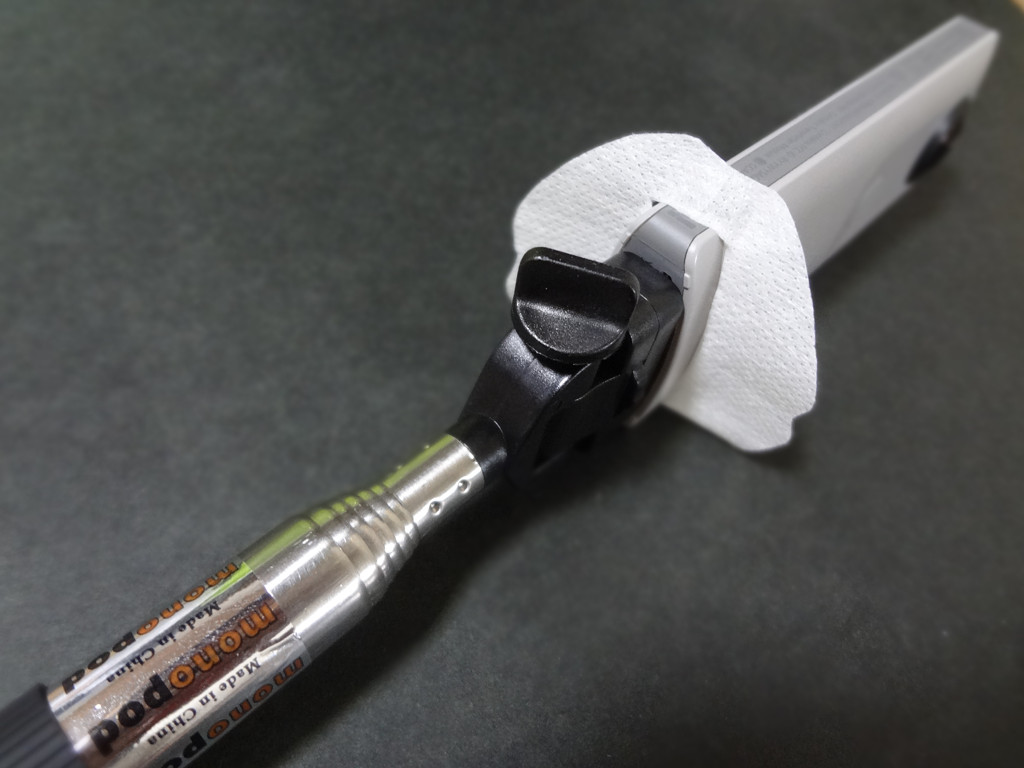 丸く切って真ん中に切れ込みを入れて、カメラに履かせます。