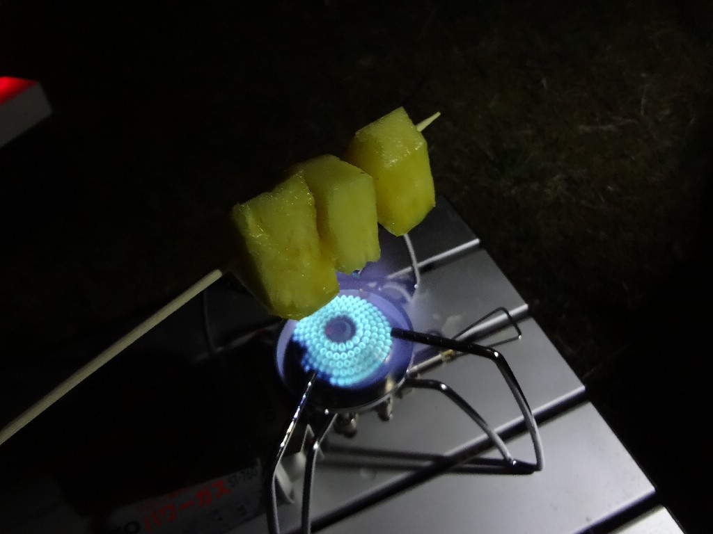 おやつに買っておいたパイナップルは炭火で焙るんじゃないのかなぁ。