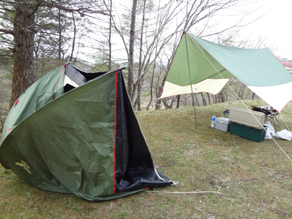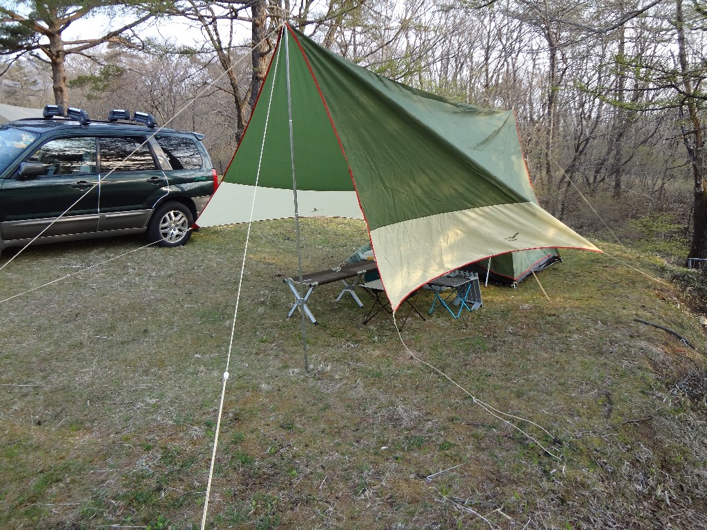 タープの紐が1本切れてブラブラしてました! Σ(´Д`;)