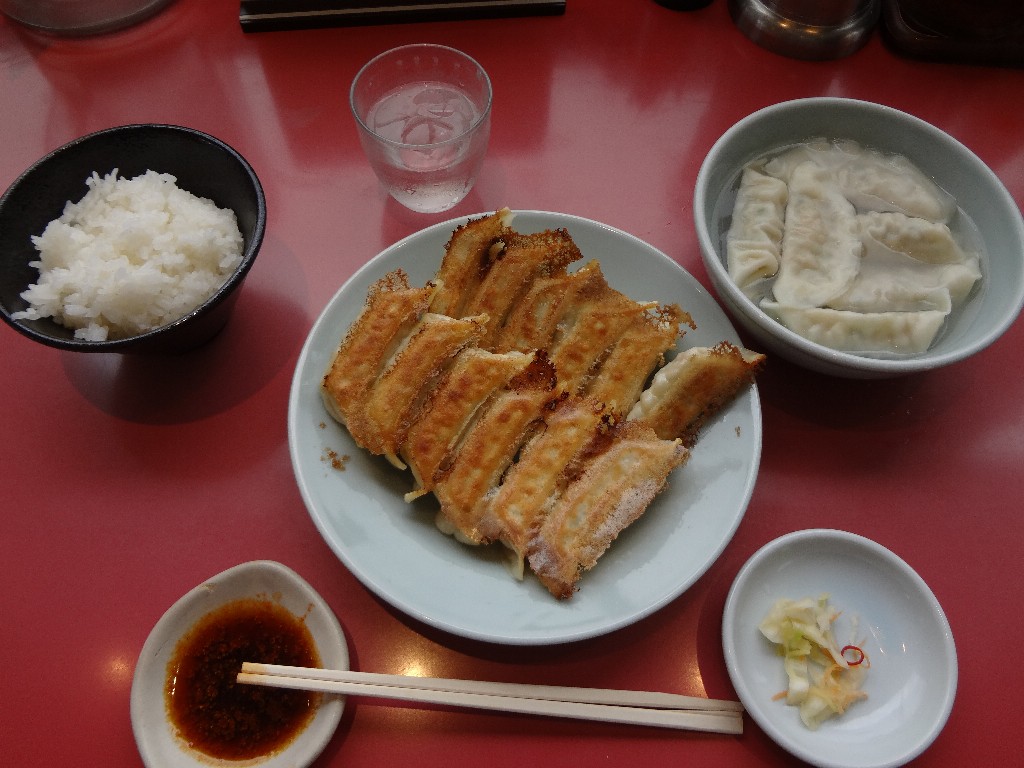 焼き餃子2人前、水餃子1人前、ライスのセット。