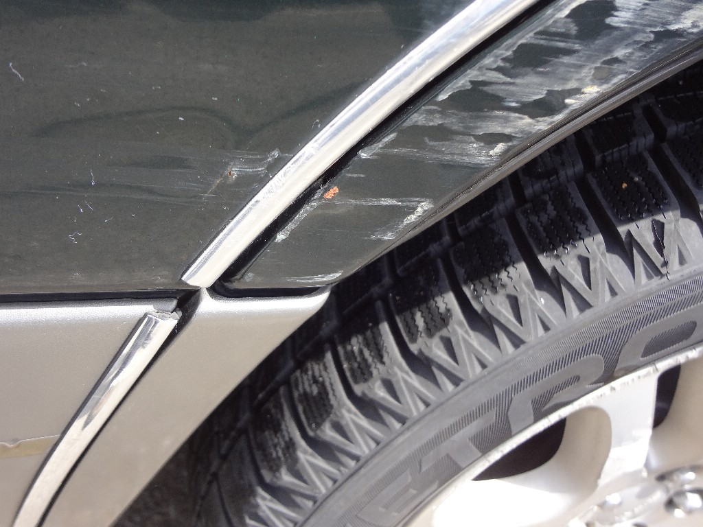 この左後ろの擦り傷、1ヶ月くらい前にバックしててガードレールに擦っちゃった時の傷なんですが