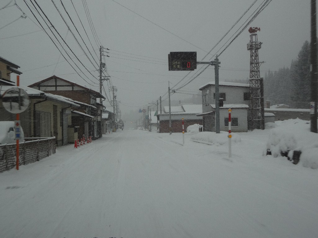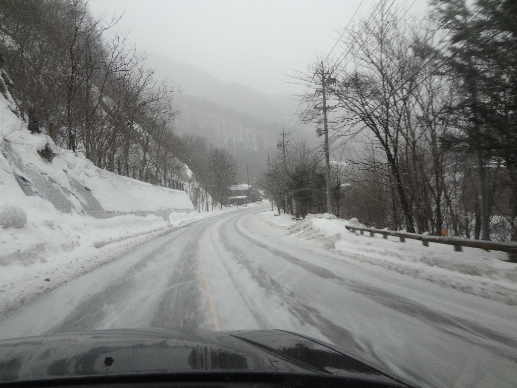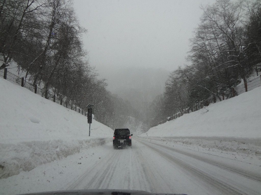 道中で雪が降り始めました・・・