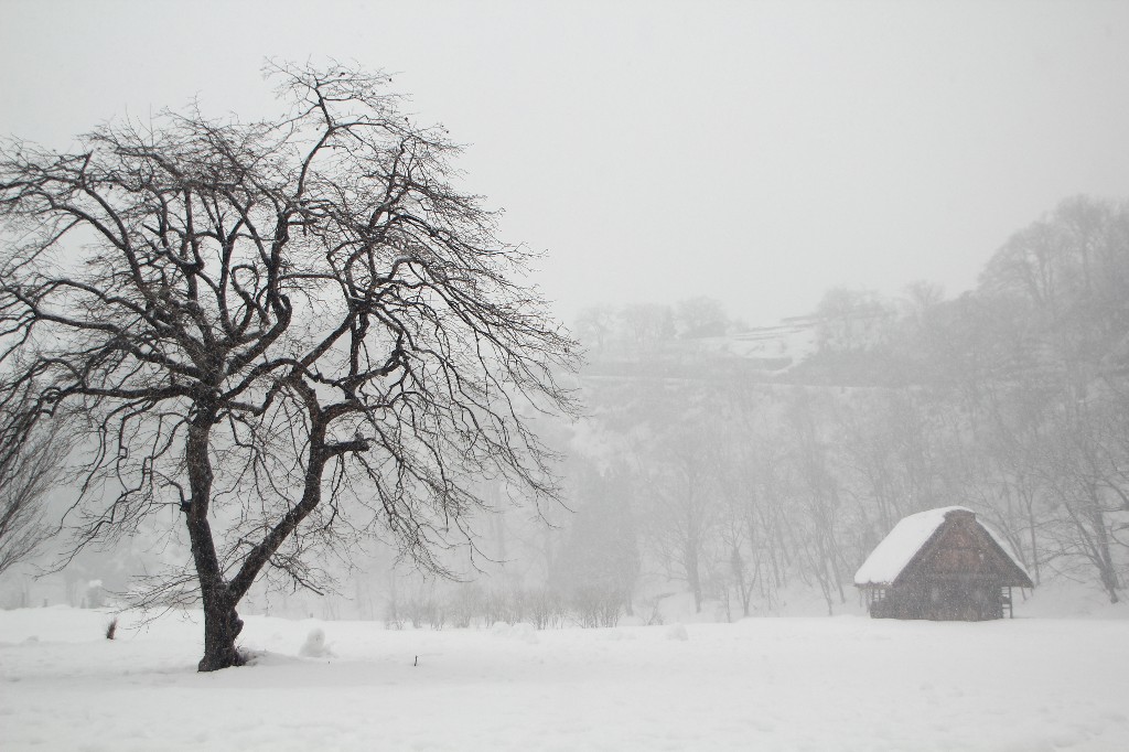 白黒の白川郷。
