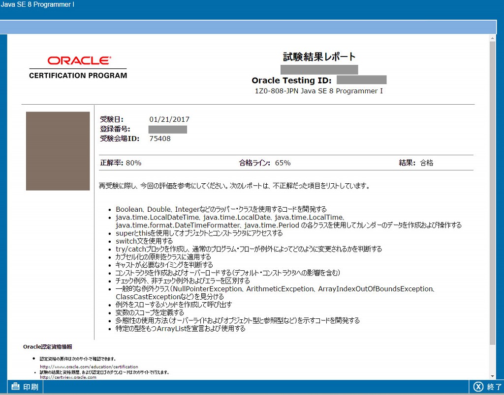 合格ライン65%のところ、80%で合格。