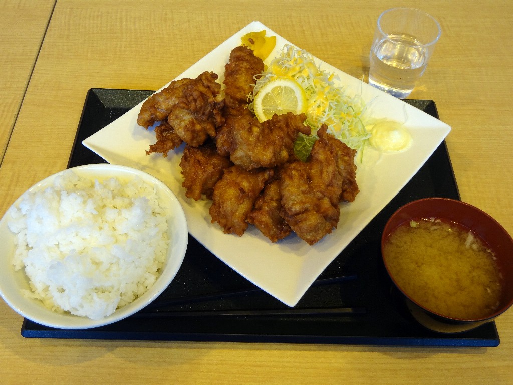 ぱっと見普通の唐揚げ定食ですが、右上のコップとよく見比べれば・・・