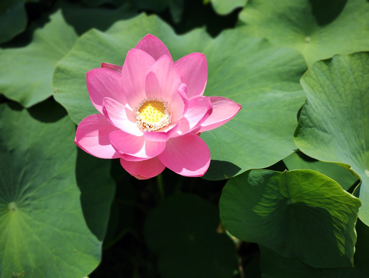 ハスが元気に生い茂ってます。