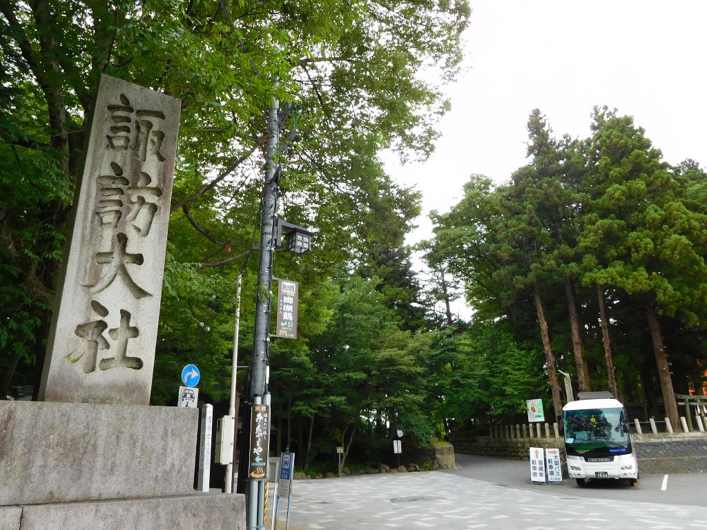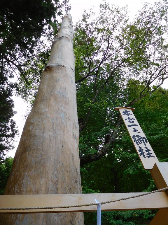 実際にはこの柱、諏訪で有名な御柱祭というお祭りで運んできた木らしいです。