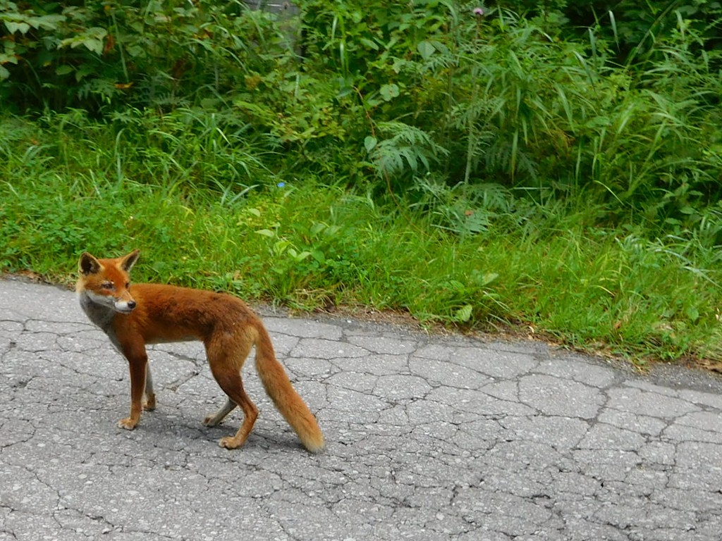 道中で野生の子狐さんを見かけました。(*゚∀゚*)