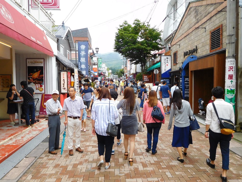 軽井沢の街並み。正確には、旧軽井沢銀座通りですかね。