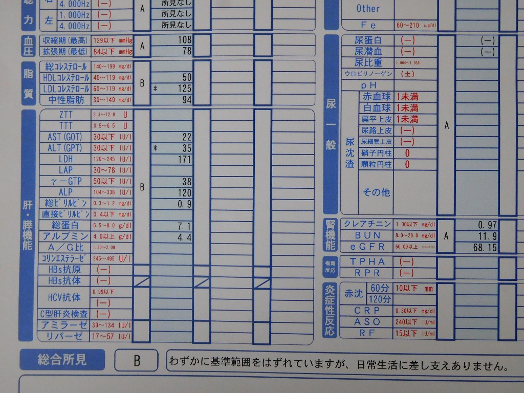 1年前は肝臓・腎臓の調子が悪かったんですが今回は如何に。