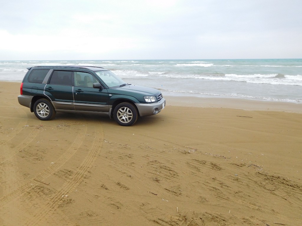 そういえば買ってから1年経ったフォレスターを、浜辺でパシャリ。