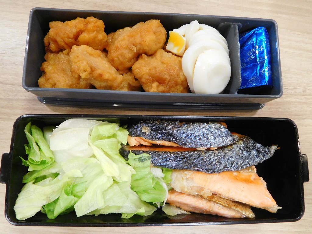 目玉焼きが茹で卵に、ウィンナーが鮭にチェンジ。
