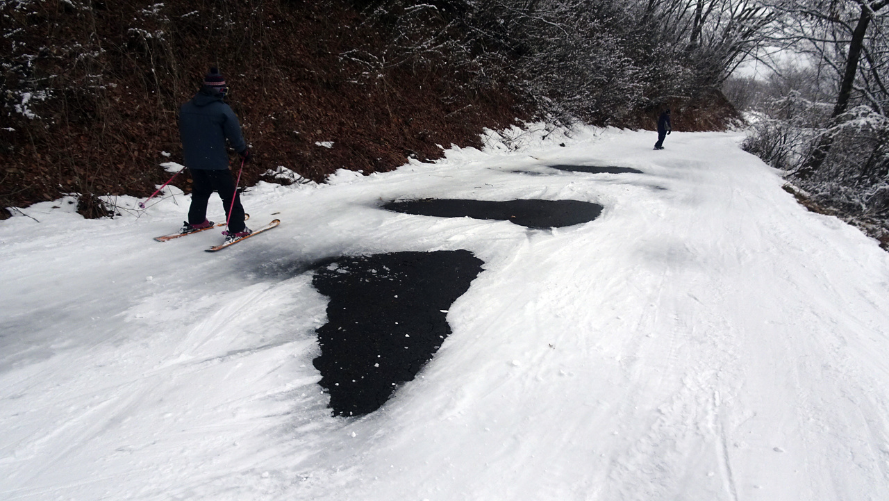 いやー林間コースでこの規模の雪不足は危ない。