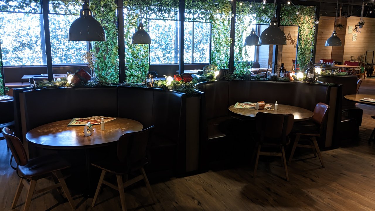 まずはここの左側、レストランに入りますよ。