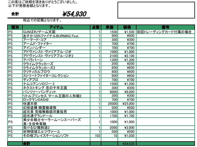 快速天使っていうソフトだけ、25,000円っていう超高値。