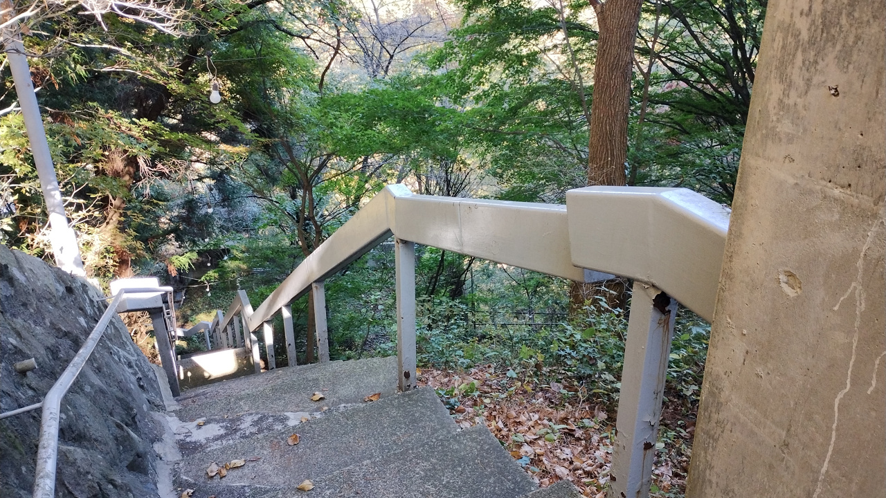500円を支払って、建物の脇の階段を下りていきます。