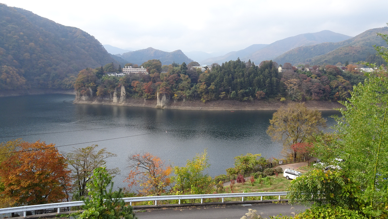 温泉を出て、対岸からの赤谷湖ビュー。
