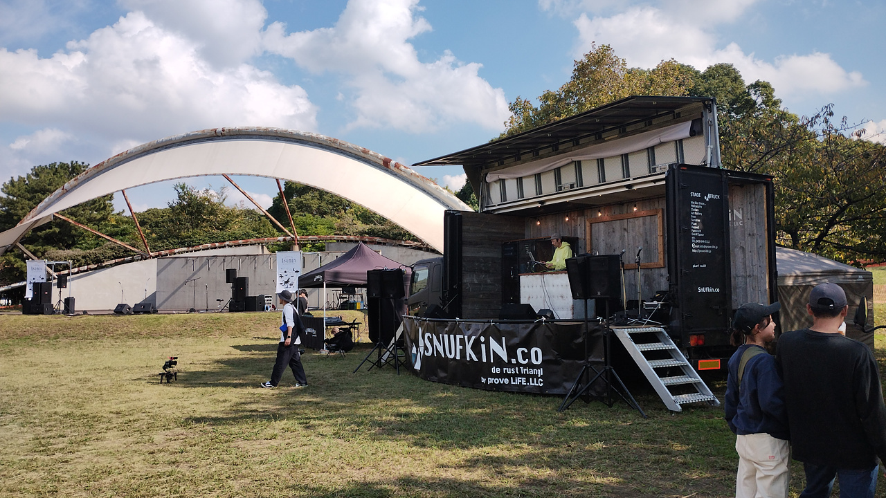 アウトドアと音楽、屋台などがあるイベント。