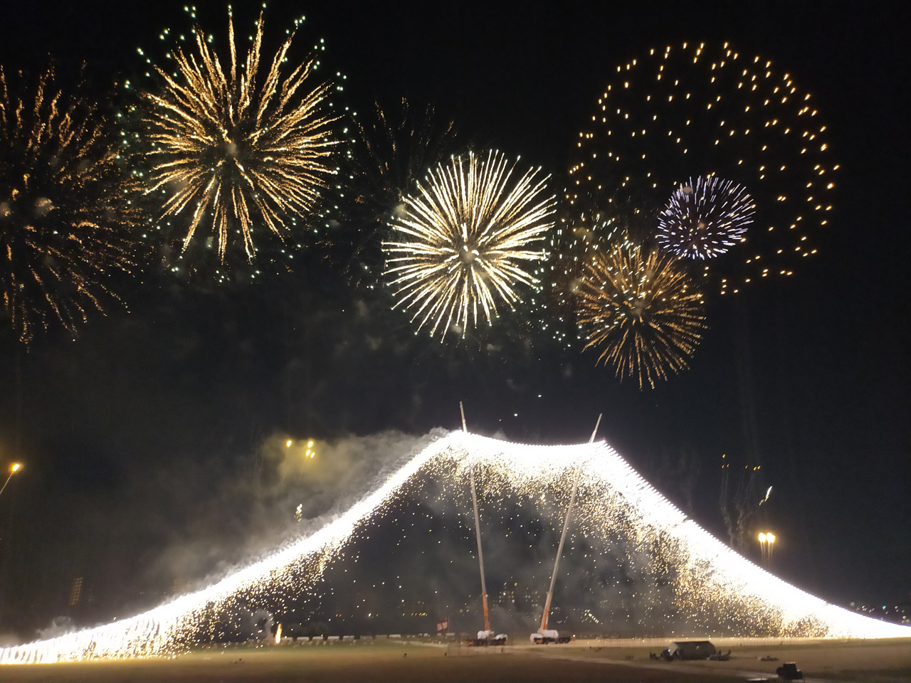 数分間隔で音楽とともにテーマに沿った花火をたくさん上げる、