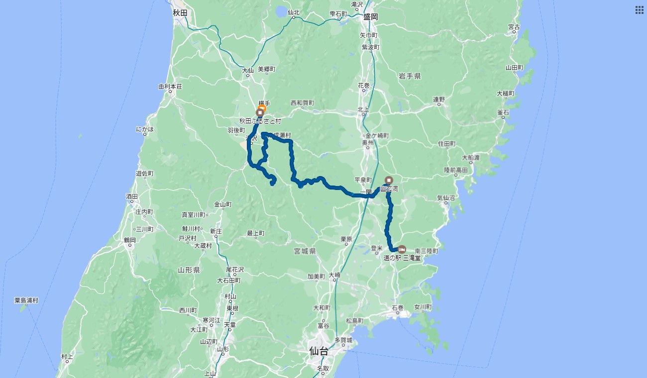 2日目の道程、車で173km・徒歩3.9km。