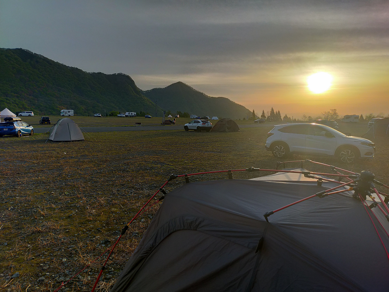 夏油高原スキー場の駐車場、GETO CAMPFIELDの朝5時。