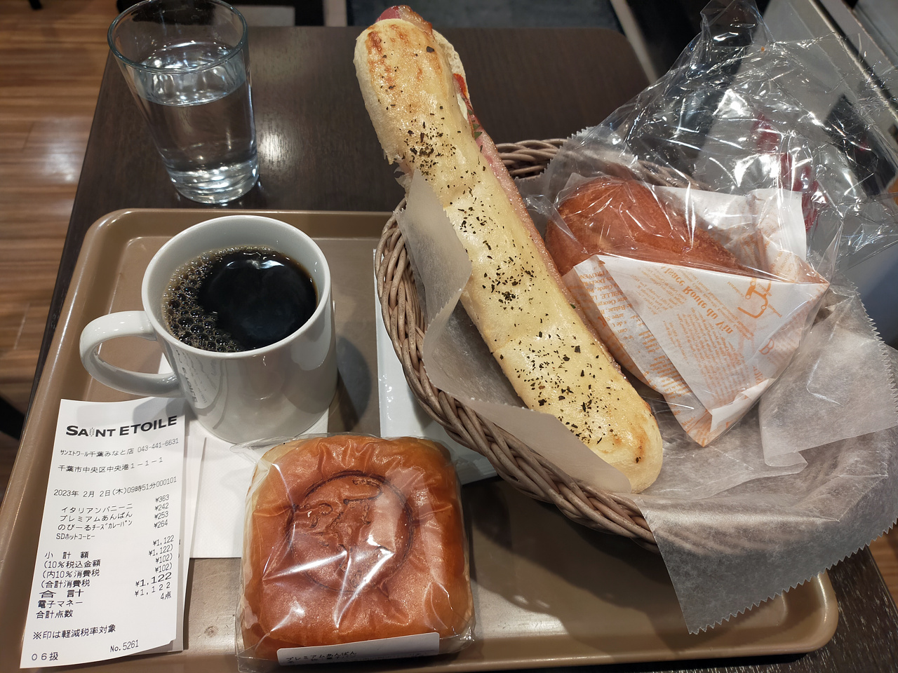 千葉みなと駅のサンエトワールで、パンをいただきます。