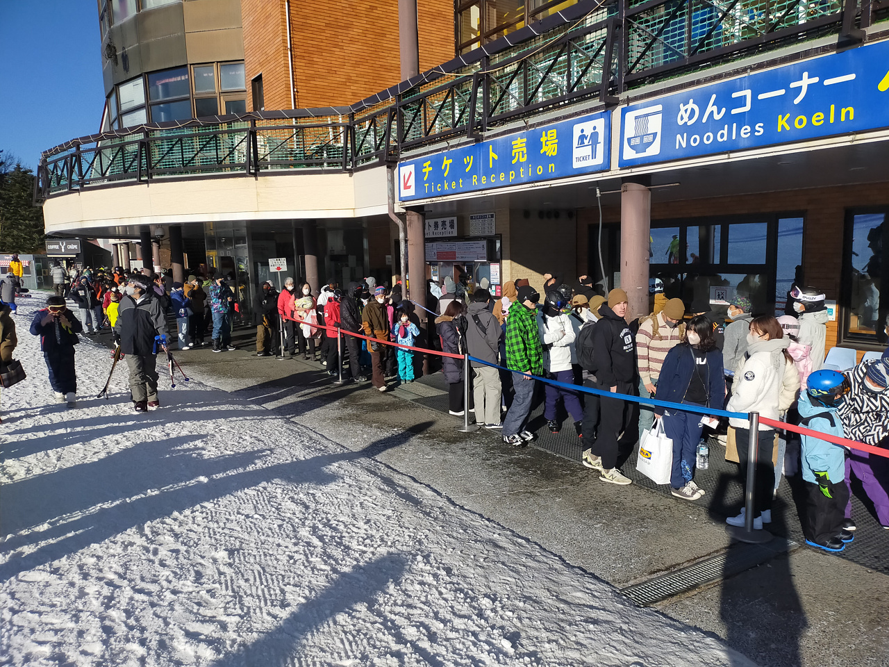 リフト券の購入待ちとレンタル待ちの行列がハンパナイ。