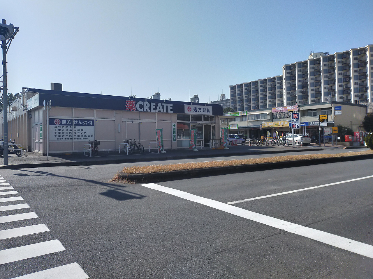 薬CREATEの裏手の、ちょっとした商店街的なところ。