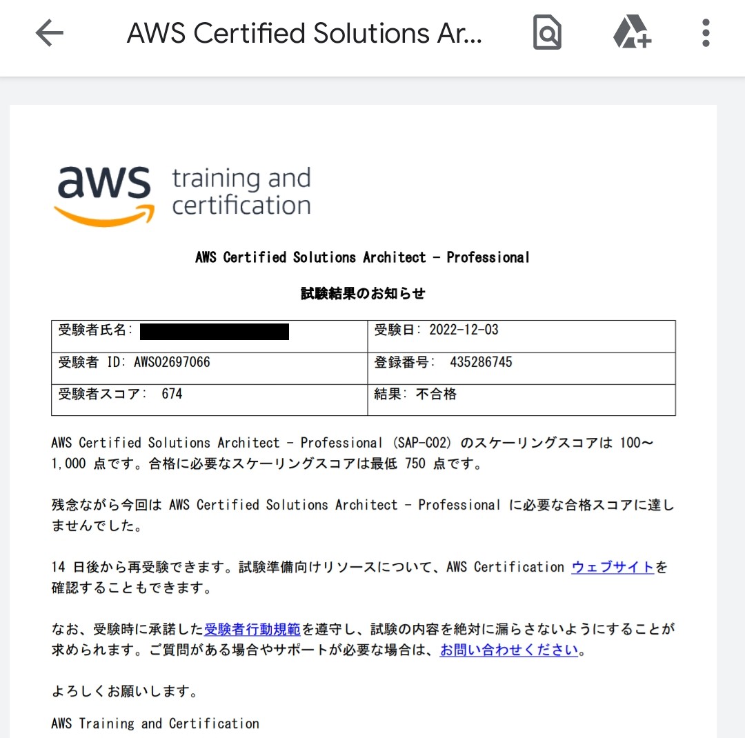 前回合格した時は画面に合格の文字が出たんですが、今回は表示されず。