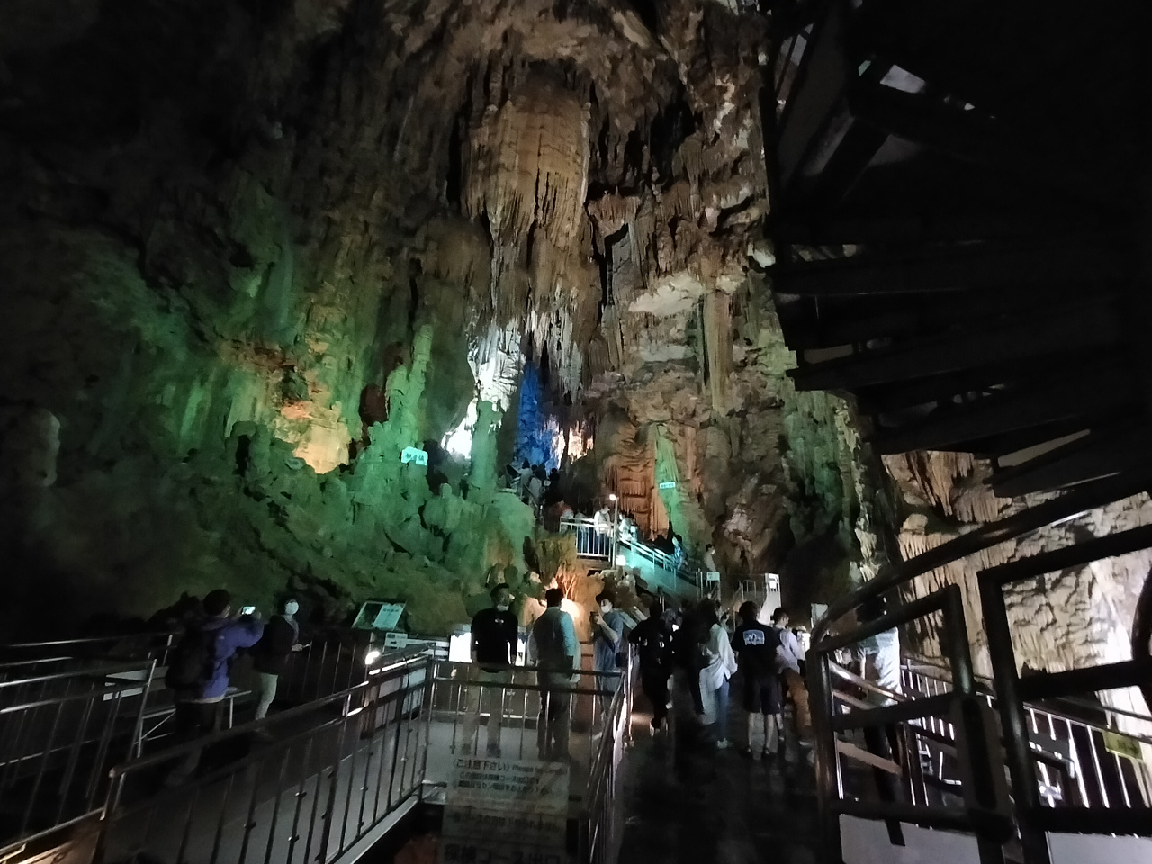 たまーにこんな感じでしゃがまないと進めないような場所もありましたが、概ね歩きやすい、まさに観光地って感じの鍾乳洞でした。