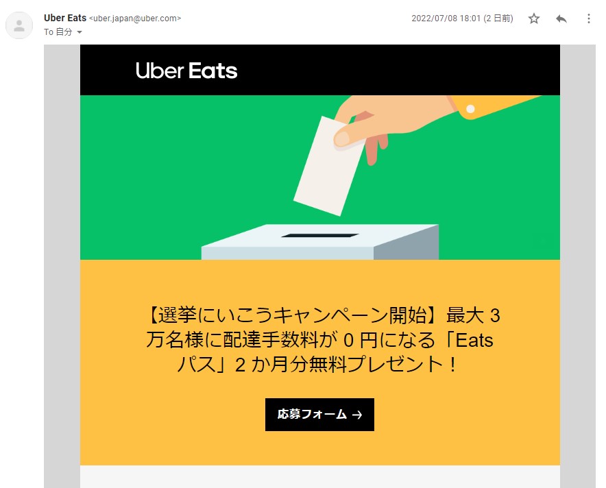 自分もUber Eatsのキャンペーンに乗ってみました。