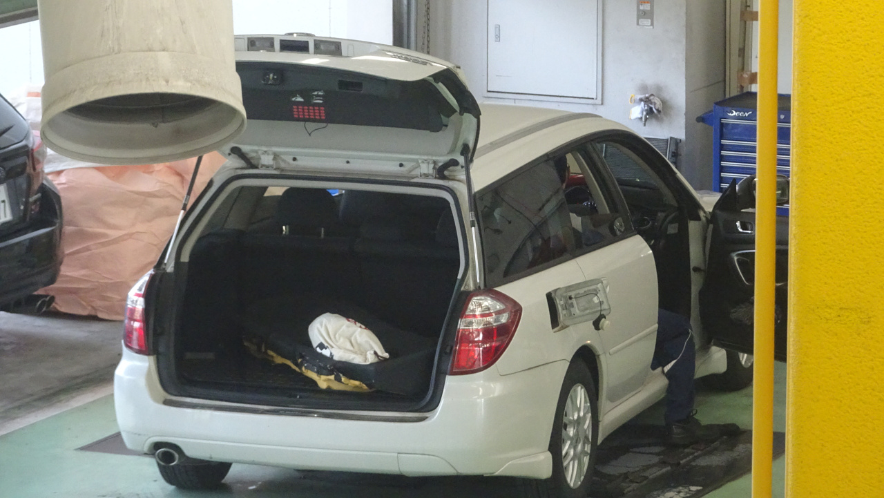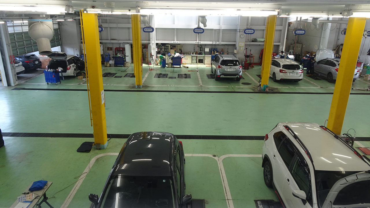 千葉スバルにて、車のメンテナンス。