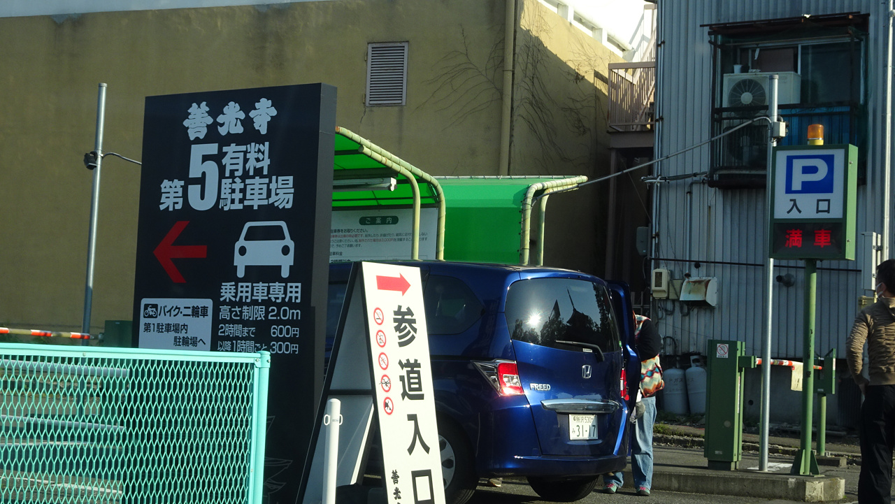 はい、ということで第1目的地は善光寺というお寺だったんですが、5分待っても車の列が動かなかったのでUターンして抜け出しました!
