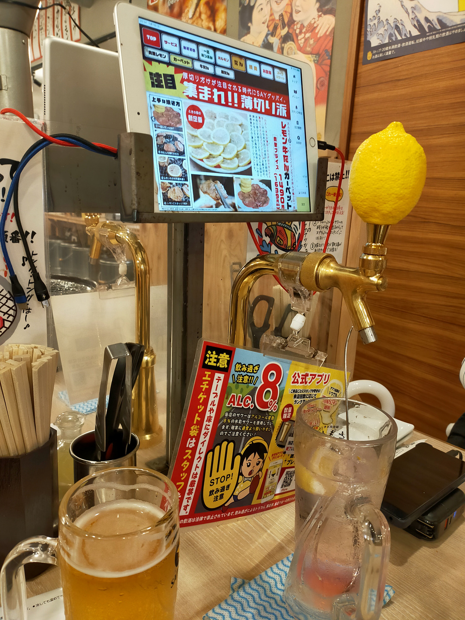 座席にサワーの蛇口が付いてます。レモンのやつね。