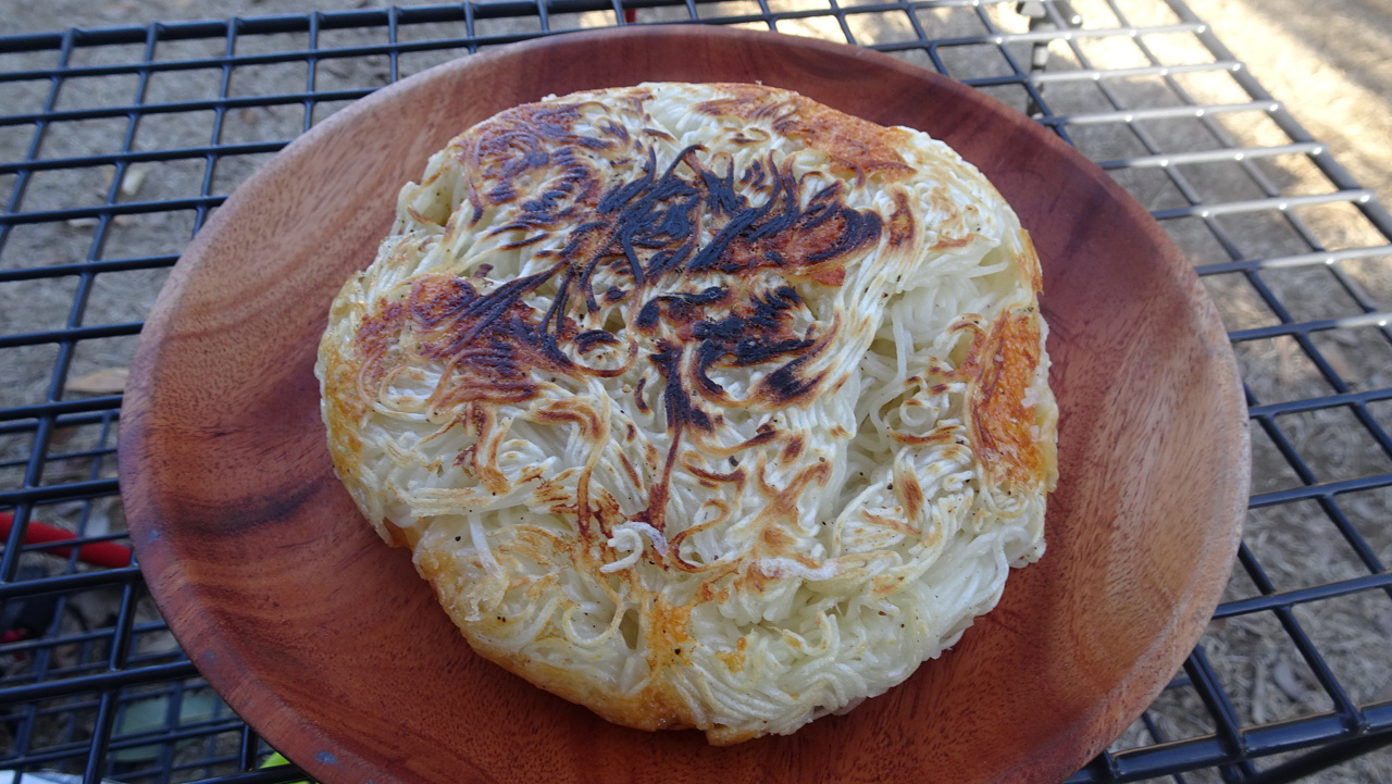 で、まぜまぜしたモノをフライパンでじっくり焼きます。