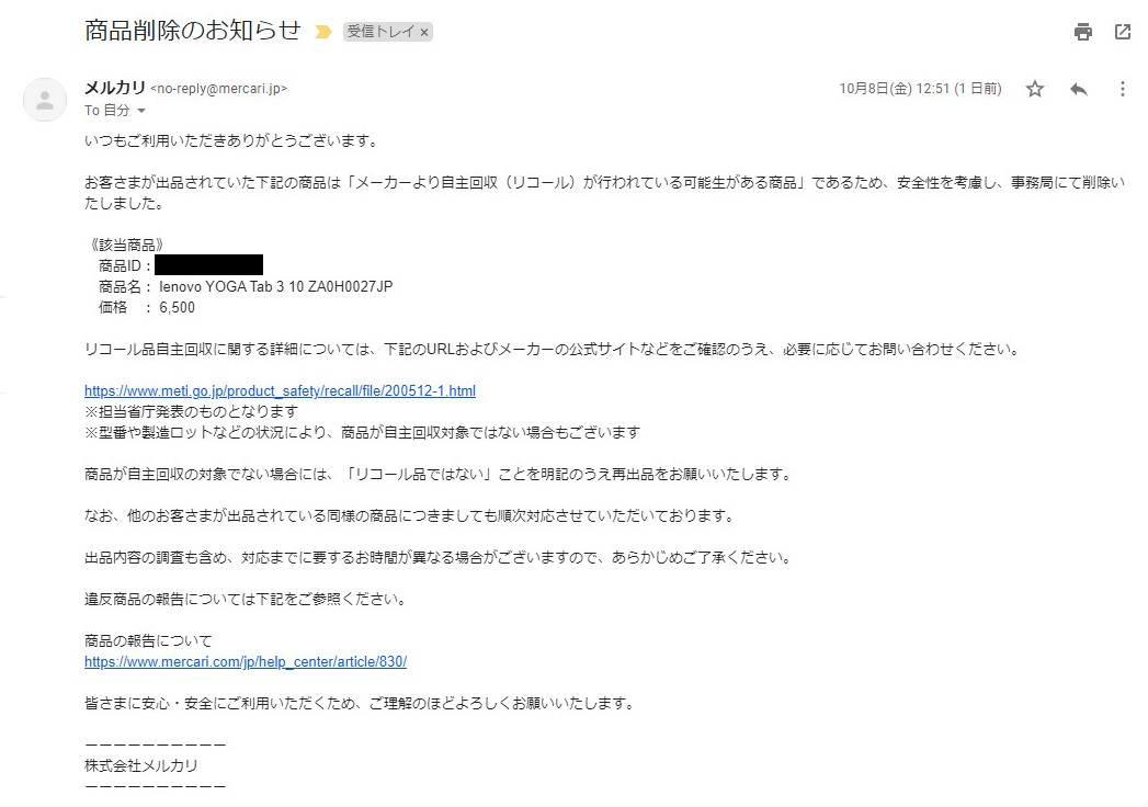 どうやらリコール対象製品だったらしく。