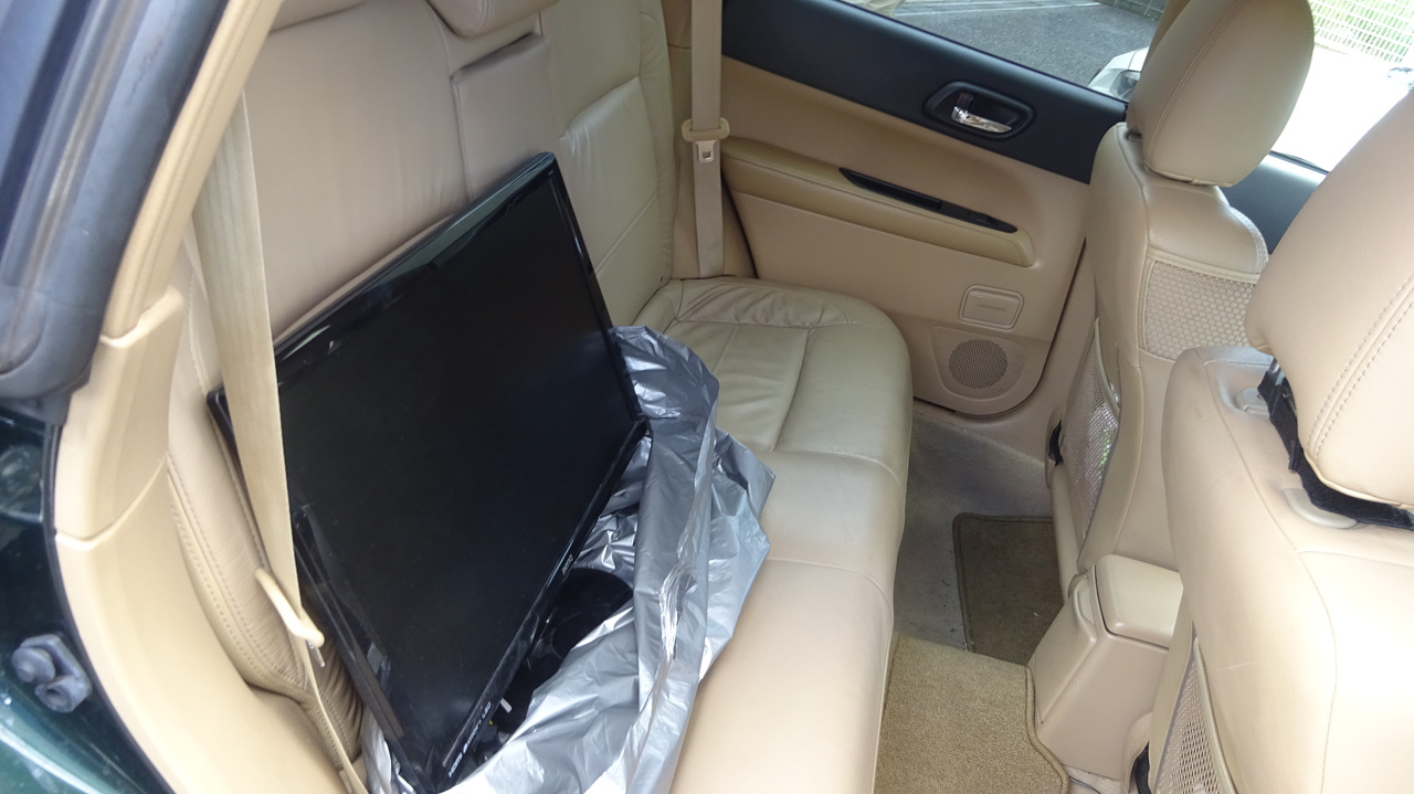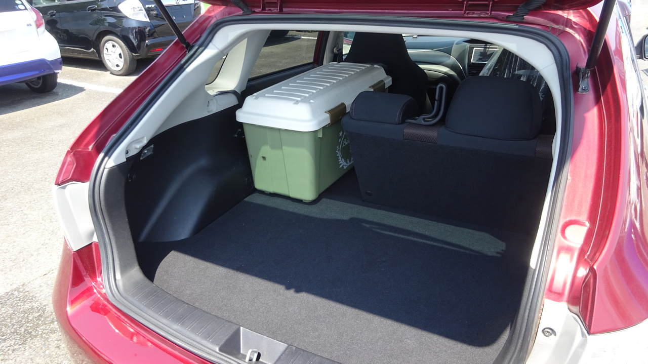 後部座席を片方倒せばこんな感じで荷物を置けるね、と。